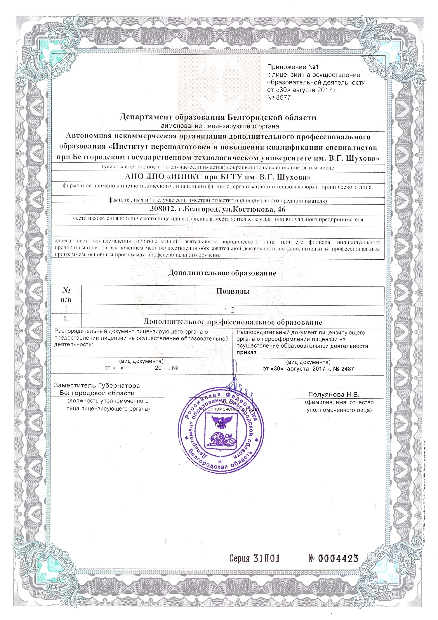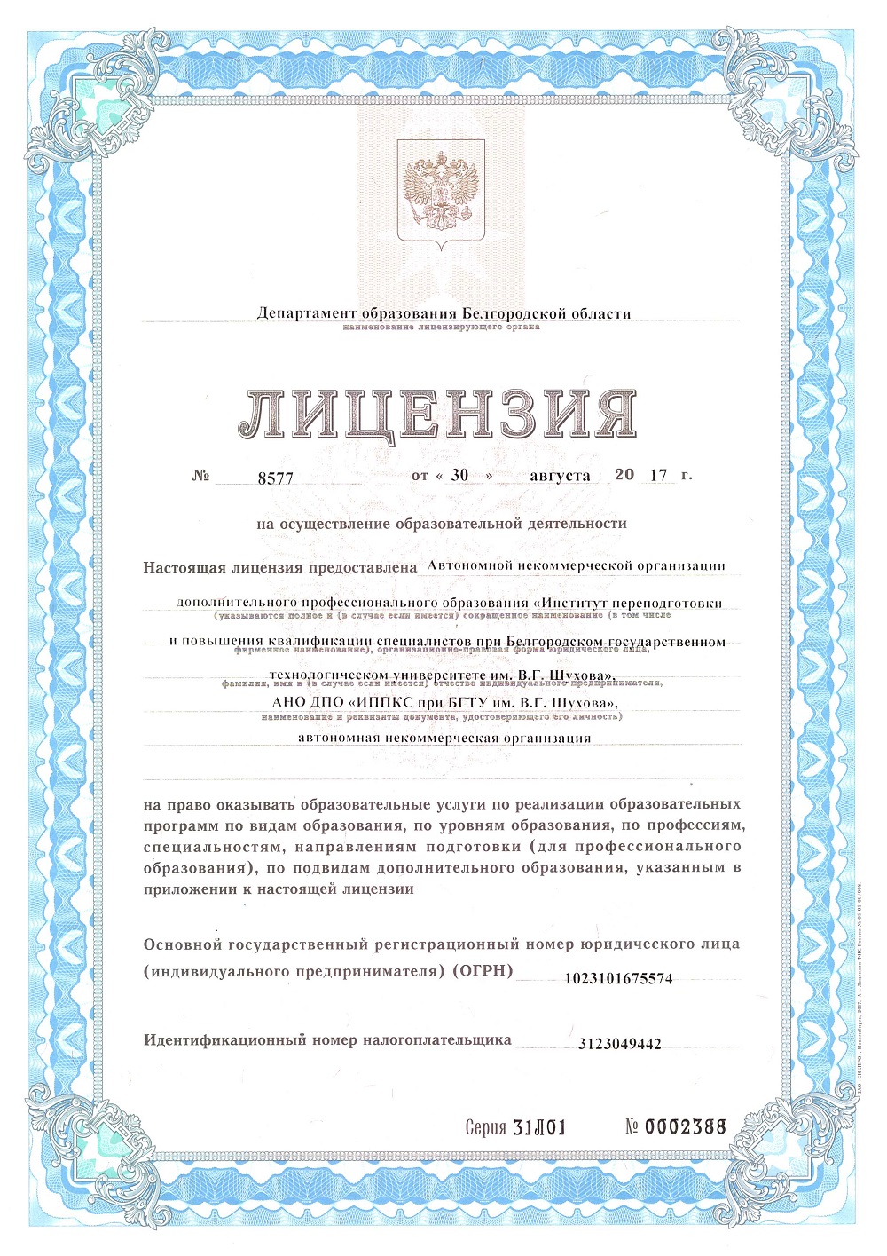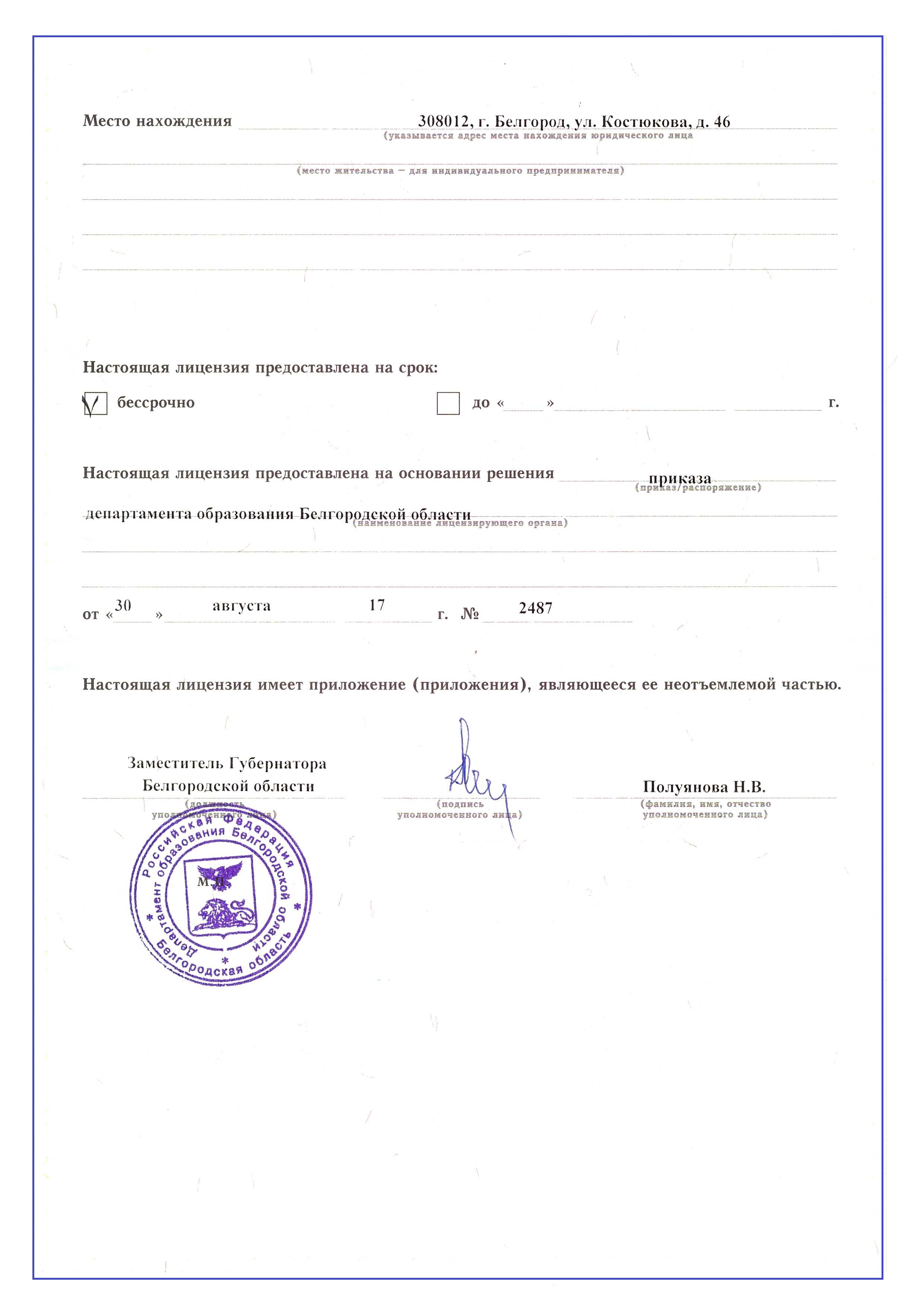 Лицензия Лицензия на право оказывать образовательную деятельность по реализации образовательных программ